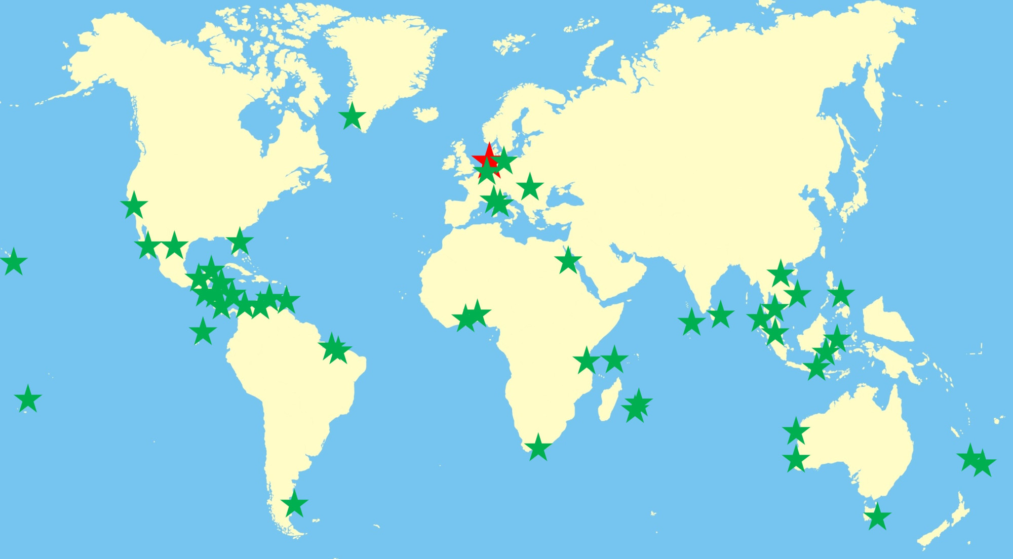 Die Orte, an denen die Projekte durchgeführt werden, sind genauso vielfältig wie ihre Inhalte. Einige Sterne stehen für mehrere Vorhaben.